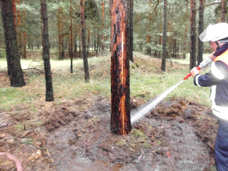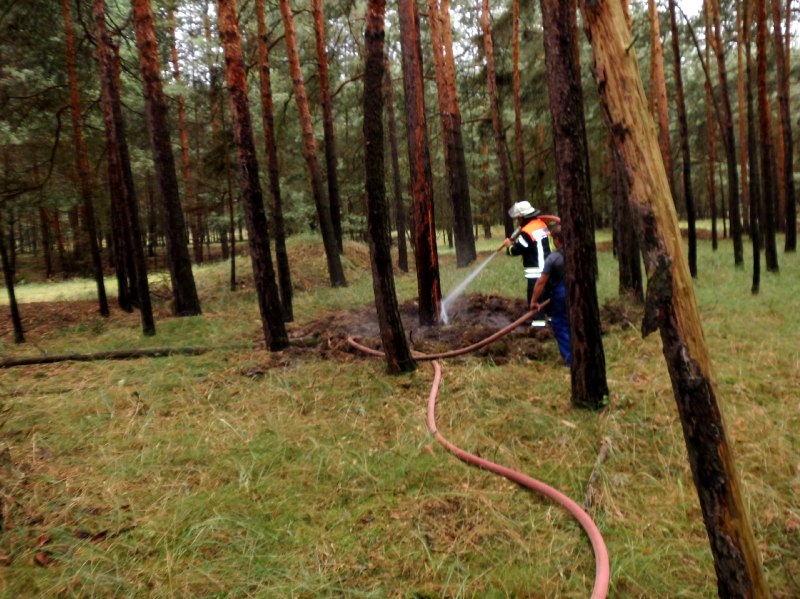 Kurzbeschreibung -Durch Blitzeinschlag vom Vorabend brannten ca. 10m2 Waldboden