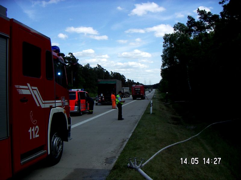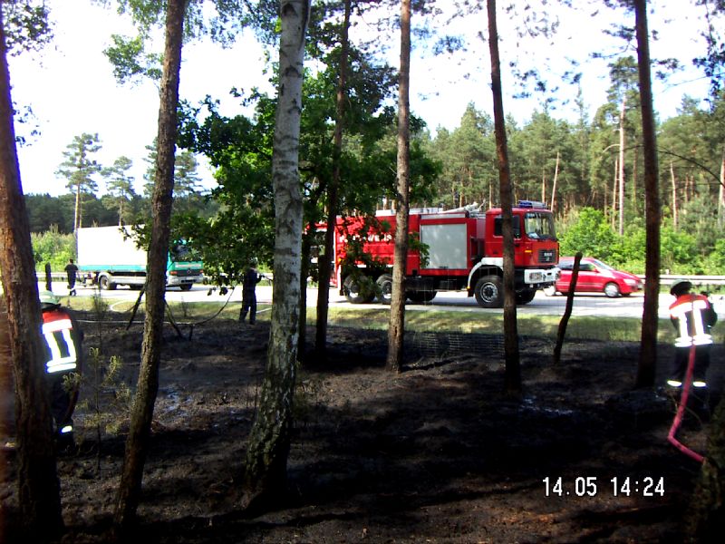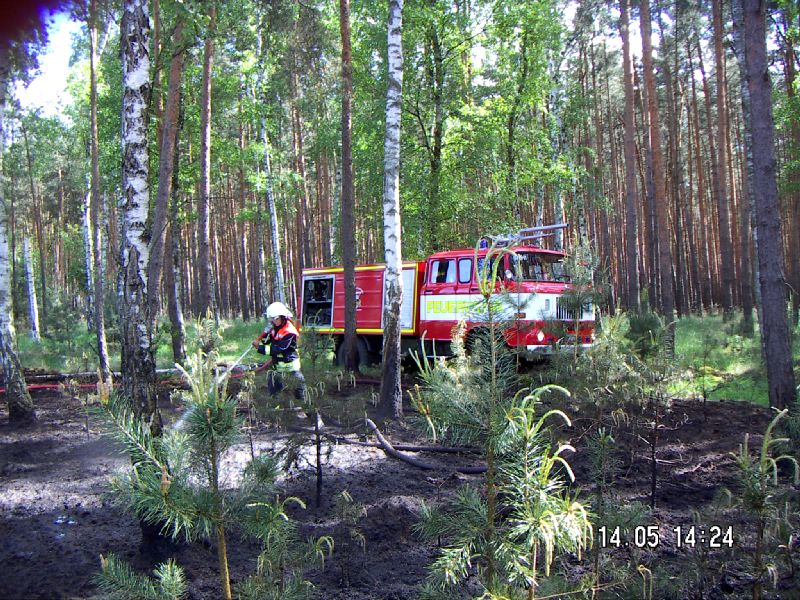 2009/062009-05-14Geschrieben von Marko Einsatzgrund Waldbrand Ort Wiesendorf Kurzbeschreibung Brand einer Waldfläche von ca. 500m2 in Nähe der Autobahn Besatzung 1/0 Eingesetzte Mittel 3xB-Schläuche, 4xC-Schläuche,