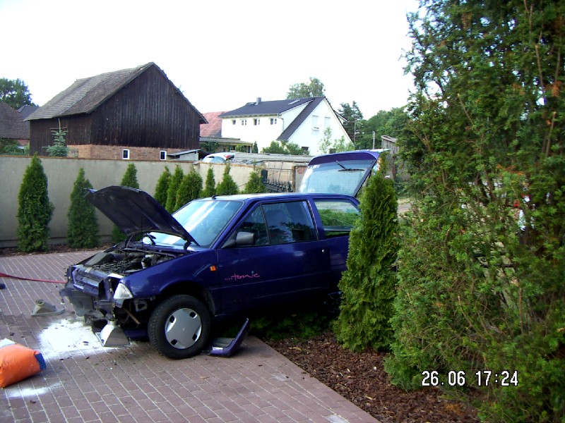 Kurzbeschreibung PKW hing im Gartenzaun fest