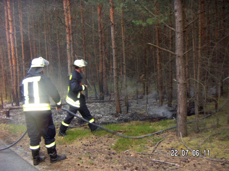 Kurzbeschreibung Radweg Koschendorf – Koselmühle, Wald stand auf einer Fläche von ca. 20 m2 in Brand.FF Schorbus löschte bereits den Entstehungsbrand.