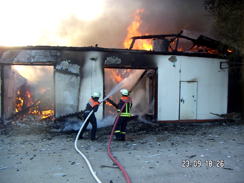 – Ablöschung des Östlichen Teils des Stallgebäudes mit Löschschaum