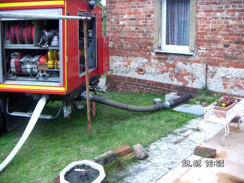 2010/332010-09-29Geschrieben von Marko Einsatzgrund Technische Hilfeleistung Ort Eichow Kurzbeschreibung -Keller stand ca.0,50m hoch im Wasser, Menge ca. 10m2 Besatzung 1/2 Eingesetzte Mittel Leitkegel, Saugkorb, Saugschläuche, 1B Schlauch, Spaten
