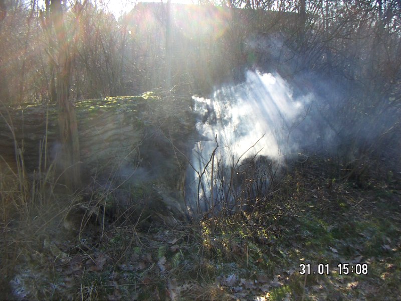 Kurzbeschreibung – umgestürzter hohler Baum brannte