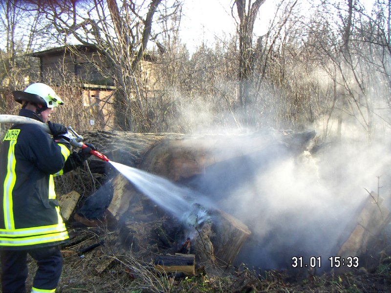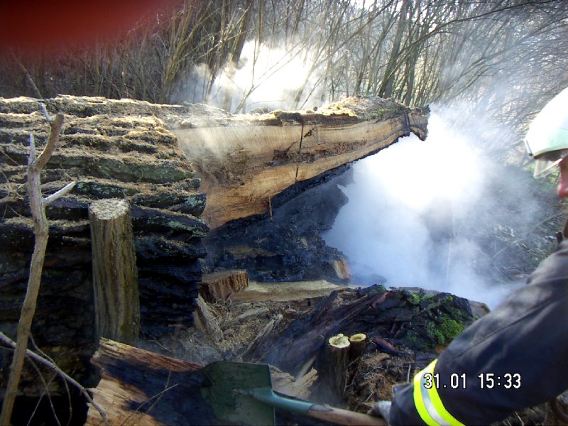 – Sichtlöcher in den Baum geschnitten und Löscharbeiten durchgeführt