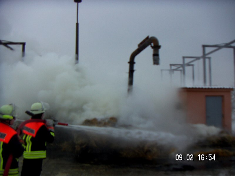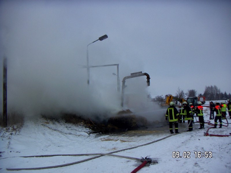 Kurzbeschreibung -Es brannten Strohballen, die mit einem C – Strahlrohr gelöscht wurden